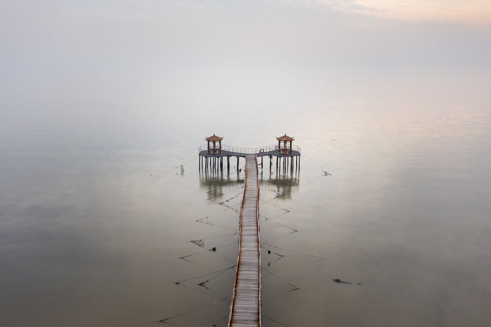 Пустынный павильон простирается в залив Бохай возле Нинхэ, восточный Тяньцзинь. Мелиорация уничтожила большую часть водно-болотных угодий.