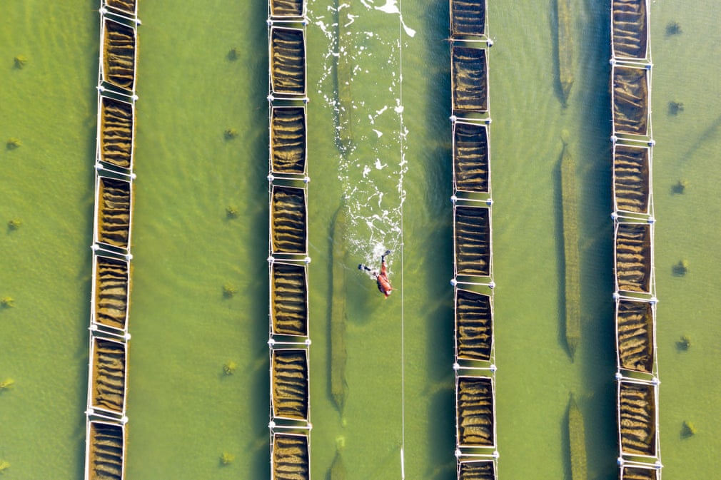 В ее каналах дайверы собирают морские огурцы на фермах в провинции Хэбэй. Морские огурцы чувствительны к повышению температуры, а глобальное потепление вызывает обеспокоенность по поводу будущего местной аквакультуры.