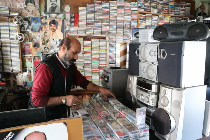 В магазине Кемаля есть пластинки, кассеты, старые плееры, радиоприемники, магнитофоны. Предприниматель старается больше внимания предавать содержанию пластинок, а не их количеству.