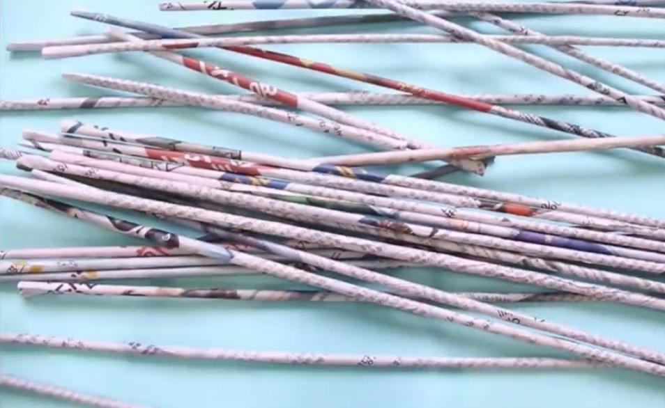 - Из газет скрутить трубочки.